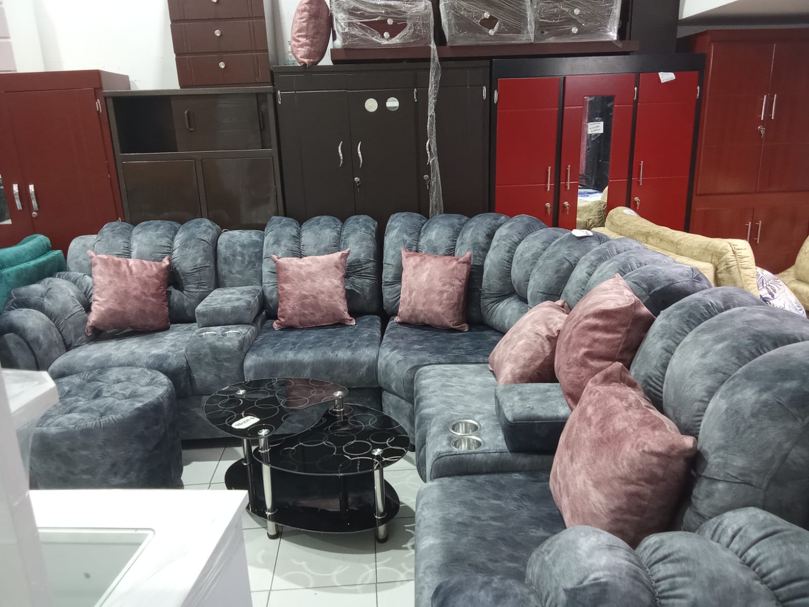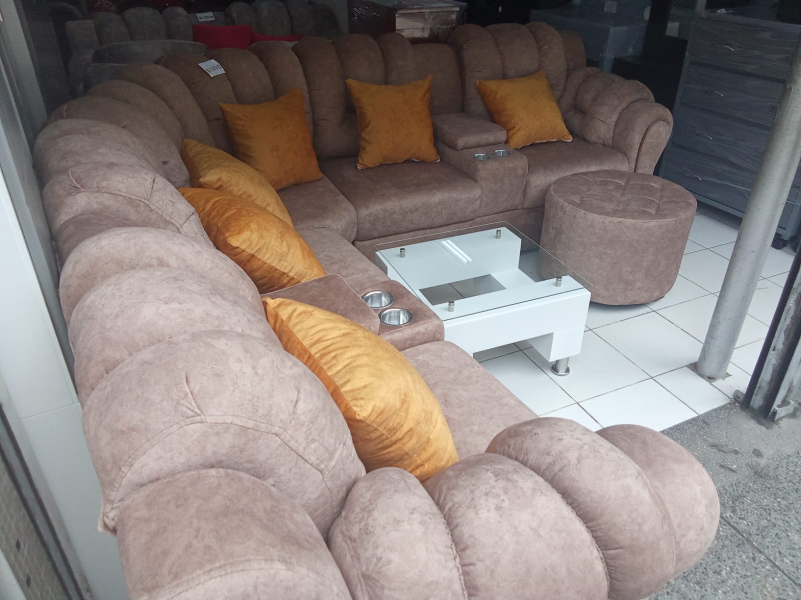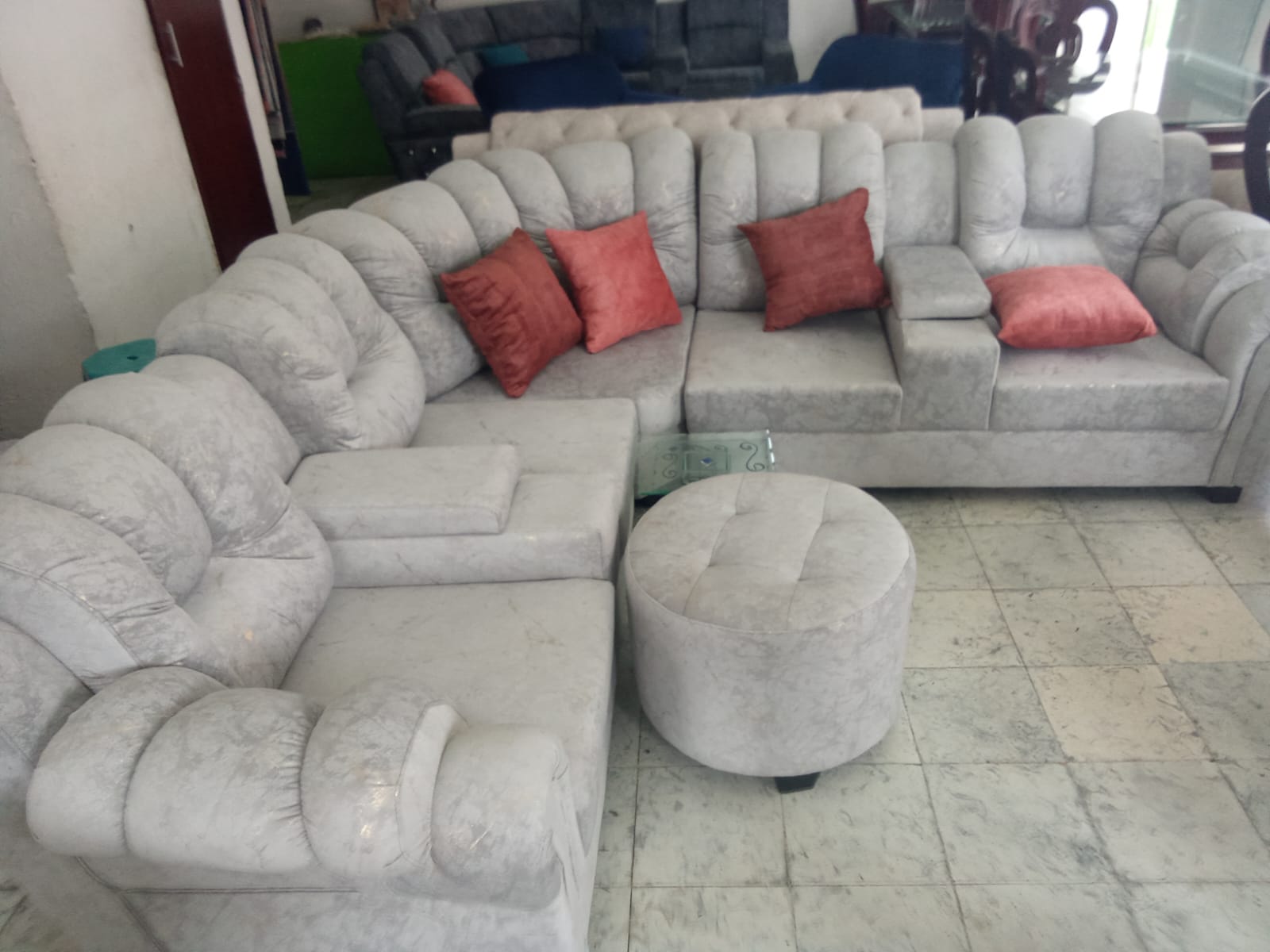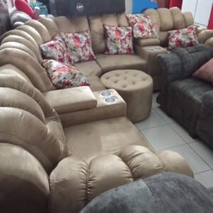 Sala Extra Grande Presidencial Reclinable elaborada en madera de pino con tela antifluido/antirasguño tambien con mesa en madera con vidrio por tan solo $2.250.000.